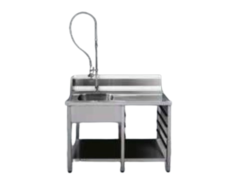 Forskyllebord i rustfrit stål inkl. spulearmatur & indstik til opvaskebakker