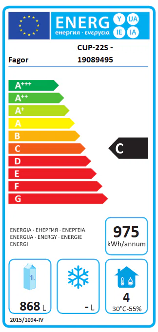 Årligt energiforbrug: 975,00 kWh