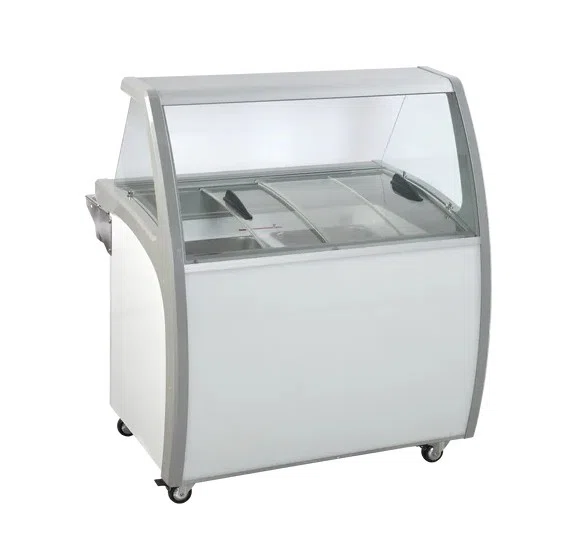 En stilren og professionel isdisk fra Scancool, udviklet til at kombinere funktionalitet med en indbydende præsentation. Den buede glasfront sikrer optimal hygiejne og giver samtidig et eksklusivt udtryk, der tiltrækker kundernes opmærksomhed – perfekt til caféer, kiosker og isbutikker.