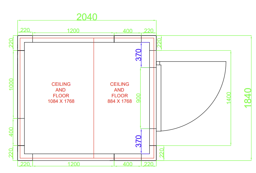 Mål: 1840x2040mm (5,73 m3)