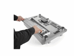 Med justerbare metalfødder og aftageligt luftfilter.