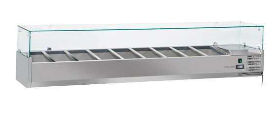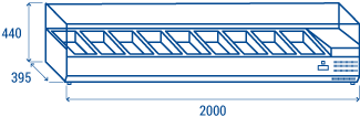 Med en bredde på 2000 mm er VRX 20/38 velegnet til 9 GN1/3 pander (medfølger ikke), tilbyder en digital termostat og justerbare fødder som standard