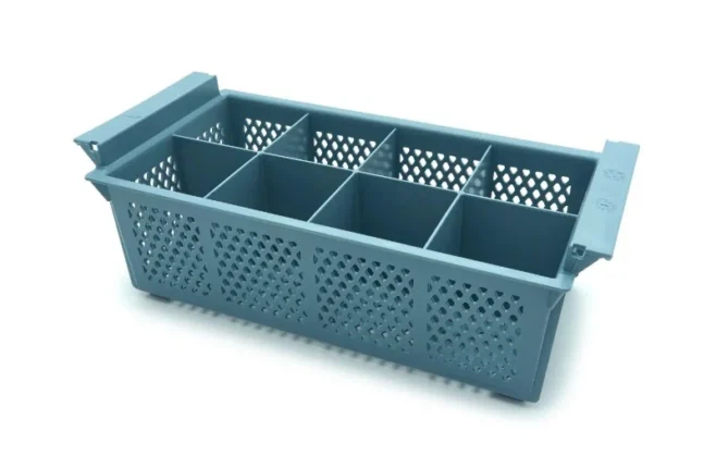 Denne rektangulære bestikbakke til opvaskemaskine bruges til nemt at sortere og organisere bestik, så det bliver rengjort grundigt og tørrer hurtigt. Denne bakke med 8 rum giver plads til de fleste typer bestik som knive, skeer og gafler. Det hjælper med at forhindre, at tingene klistrer sammen eller overlapper under opvaskecyklussen, hvilket sikrer en mere grundig rengøring.
