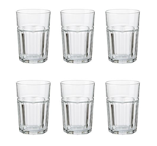 Glasset, der fås i to størrelser, er kulde- og varmefast og har et kraftigt, tidløst design med et diskret mønster, som sikrer et godt og behageligt greb om glasset.